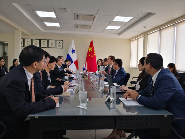 与巴拿马工商部长阿罗塞梅纳进行会谈