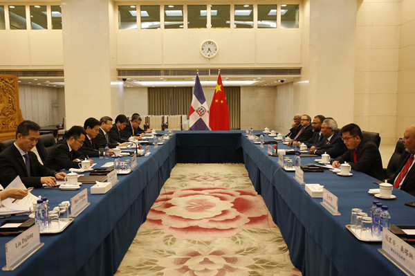 钟山部长会见多米尼加经济、规划和发展部长桑塔纳
